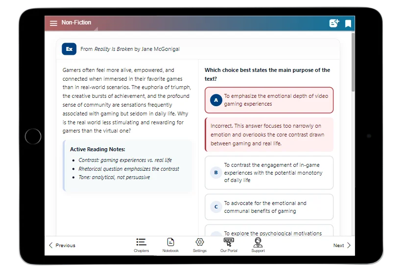 Interactive practice that mirrors the digital test experience