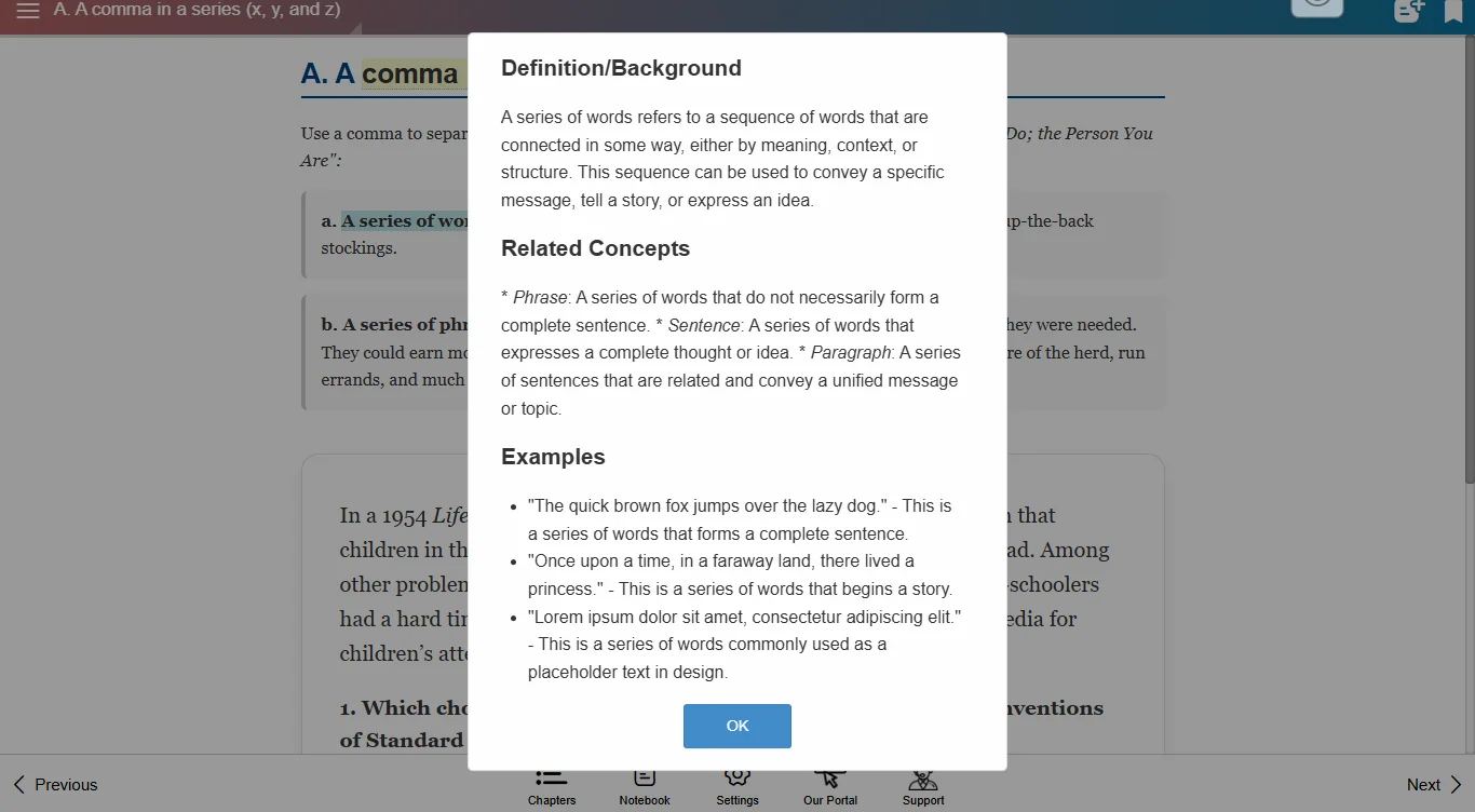 AI-powered Smart Explanations when selecting a word you do not understand!